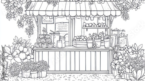 © Zeva, Obraz premium Fruit stand market summer flowers outdoor