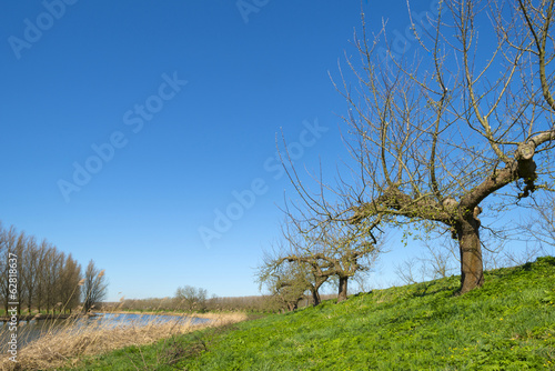 © Naj, Obraz premium Fruit trees on a dike along a sunny river
