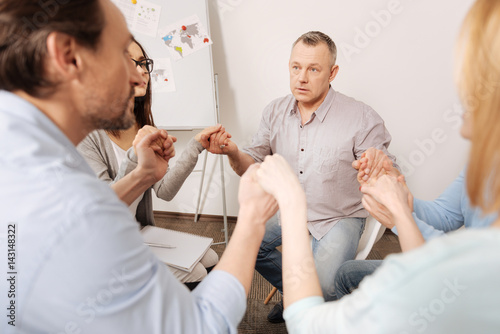 © Viacheslav Yakobchuk, Fototapeta premium Frustrated man holding hands with his colleagues