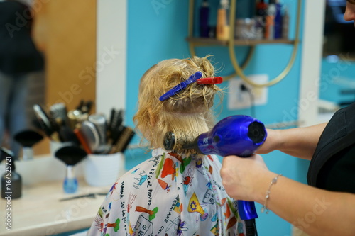 Fototapeta premium Fryzjer, dziecko u fryzjera