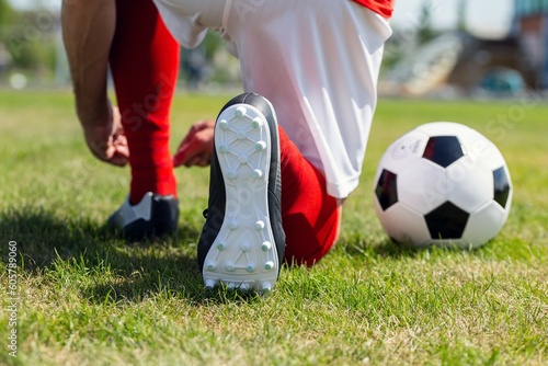Obraz premium Fußballer schnürt sich die Schuhe (Symbolbild)