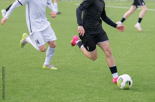 Obraz premium Fußballspieler, die dem Ball hinterherlaufen