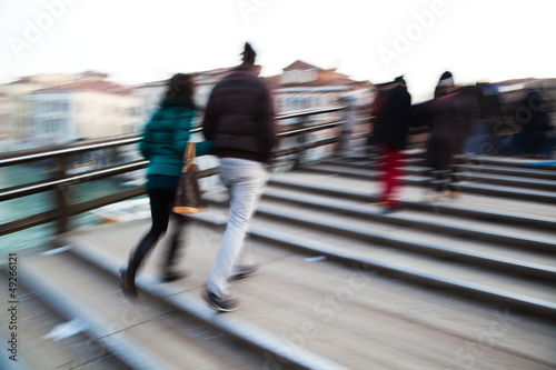 © Christian Müller, Obraz premium Fußgänger überqueren eine Brücke in Venedig