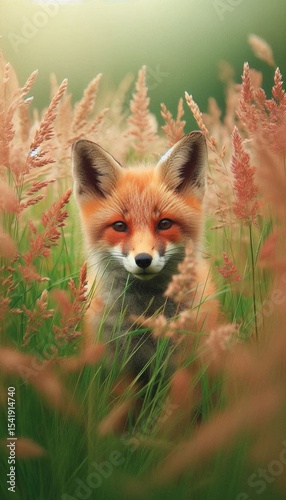 © Silvia Bogdanski, Obraz premium Fuchs versteckt im hohen Gras
