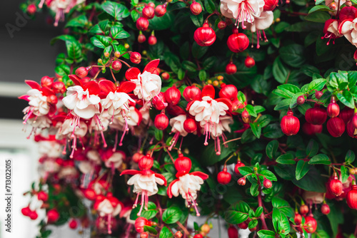© ansyvan, Fototapeta premium Fuchsia Magellanica Flower Blooming in the Garden