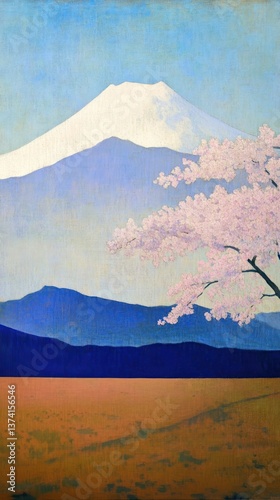 Obraz premium Fuji sakura flower landscape wallpaper painting blossoms.