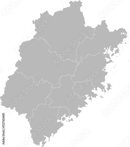 © Terry, Fototapeta premium Fujian, China – administrative vector map with city boundaries (Web Mercator projection, PPT-compatible & fully editable)
