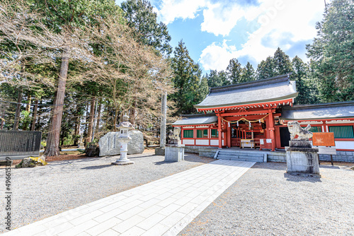 Fototapeta premium 初春の冨士御室浅間神社本宮 山梨県富士河口湖町 Fujiomurosengen Shrine Hougu in early spring.