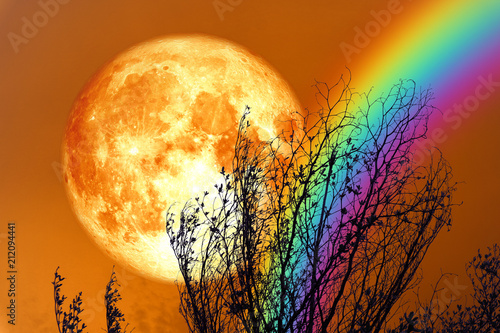 Naklejka premium full blood moon back silhouette dry tree and colorful sky