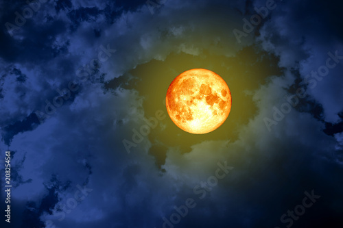Fototapeta premium full blood moon back space silhouette dark blue cloud on sky