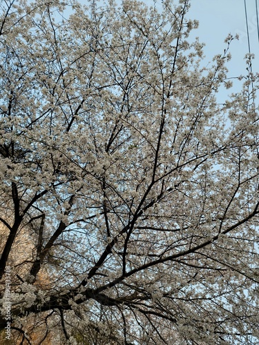 Fototapeta premium Full Bloom Cherry Blossom Tree Against a Clear Sky
