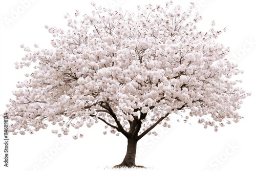 © kucret, Naklejka premium Full bloom cherry blossom tree isolated on white background.