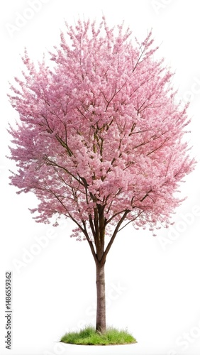 © Sayem, Fototapeta premium Full bloom cherry tree isolated on white background in spring season