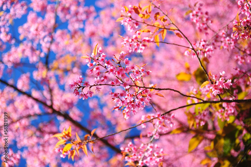 © karinkamon, Obraz premium Full Bloom Pink Sakura Cherry Blossom Flowers in Spring Season