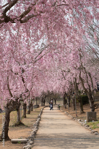 Naklejka premium Full blossom shidare sakura in ibaraki JAPAN