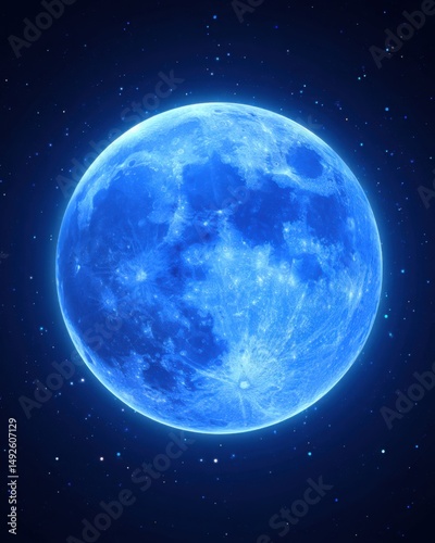 Fototapeta premium Full Blue Moon shining in dark space with stars digital artwork astronomy celestial body lunar surface cosmic event