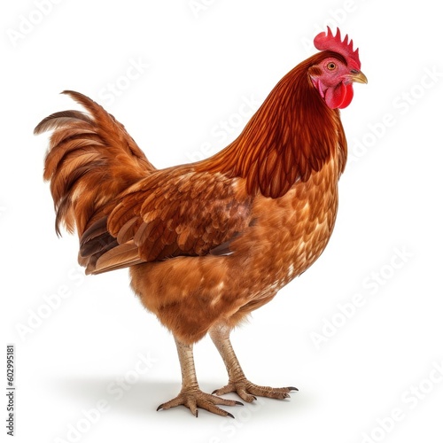 Fototapeta premium Full body brown chicken ,hen isolated on white background. Generative AI