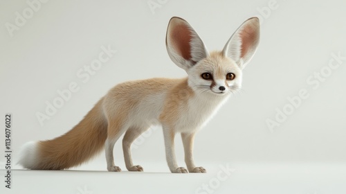 Obraz premium Full-body image of a fennec fox with large ears on a white background.