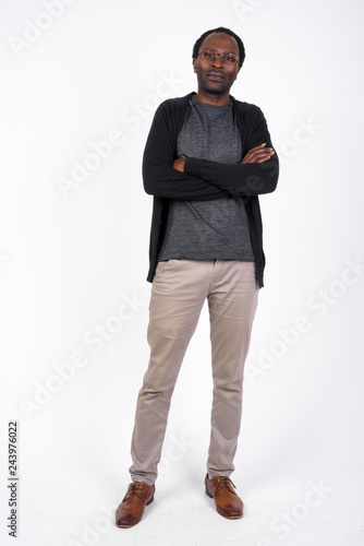 Fototapeta premium Full body shot of handsome African man with arms crossed