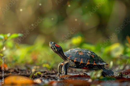 © Eyestetix Studio, Obraz premium Full body view of Flatback Turtle in natural habitat, full body shot, full body View