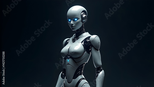 © Ehsan, Naklejka premium Full Body View of Futuristic Female Robot in Dark Background