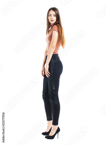© Andrey_Arkusha, Obraz premium Full body, Young beautiful brunette woman in black pants
