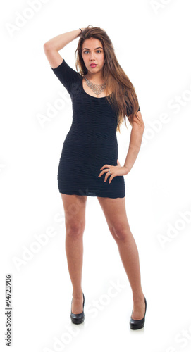 Fototapeta premium full body young pretty woman wearing a black dress