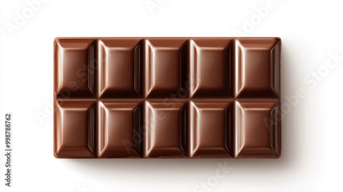 Obraz premium Full chocolate bar, precise rectangular segments, high-gloss finish, realistic texture, isolated on white background