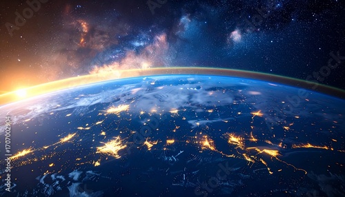 Fototapeta premium Full-color background featuring a close-up of Earth’s surface from space,...
