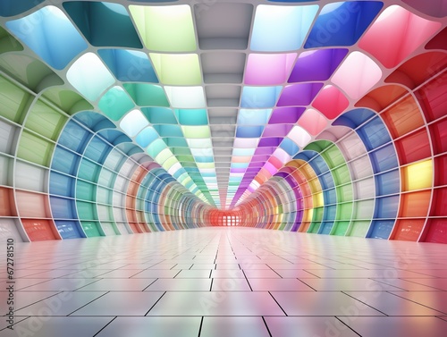 © Nipon, Fototapeta premium Full 360 degree equirectangular panorama hdri of colourful modern futuristic technology building interior 3d render illustration