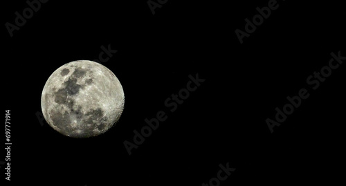 © Kishan, Obraz premium Full detail moon closeup on a black background with stars visible