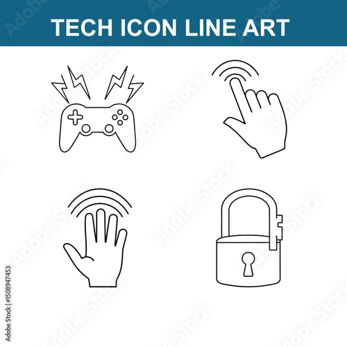 © kuddus , Obraz premium full editable tech line art icon on white background