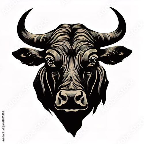 © Nikname, Fototapeta premium Full face a bull head silhouette against white background.