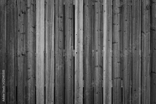 Fototapeta premium Full frame background of an unpainted wood board wall in black and white with...