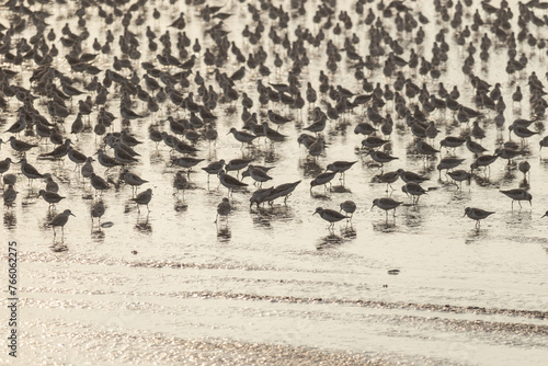 © Ycomo, Fototapeta premium Full frame image of many different species of sea birds on a beach