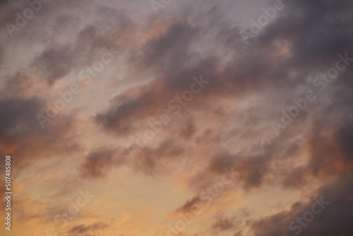 Naklejka premium Full frame of beautiful sky with clouds at sunset in warm colors.