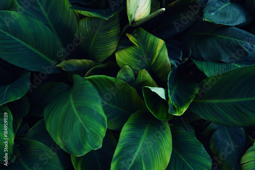 Fototapeta premium Full Frame of Green Leaves Pattern Background, Nature Lush Foliage Leaf Texture, tropical leaf