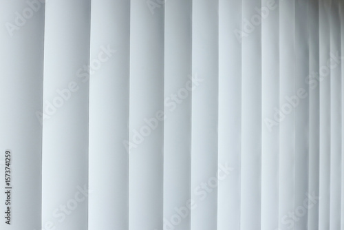 © Queenmoonlite Studio, Fototapeta premium Full Frame Of Pristine White Vertical Blinds, Creating Pattern Of Light And Shadow