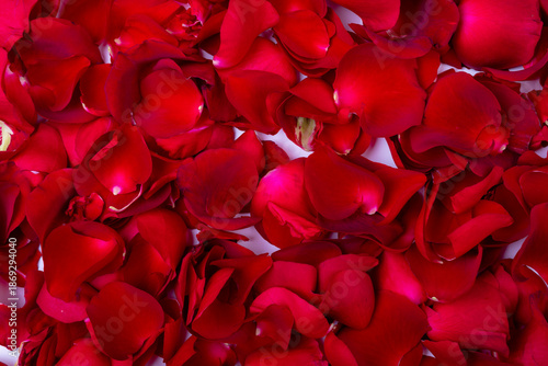 Fototapeta premium Full frame shot of fresh red rose petals with copy space
