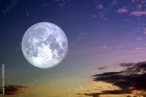 Fototapeta premium Full hay moon and silhouette white cloud night sky