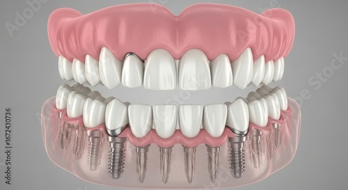 Obraz premium Full Jaw Dental Implants and Dentures 3D Render