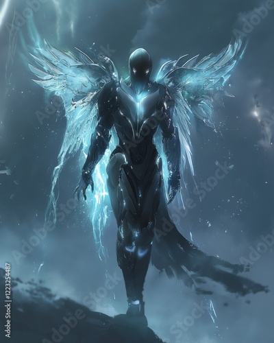 © Евгений Высоцкий, Fototapeta premium Full length Captain - an alien with space wings He_002