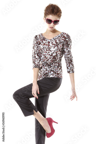 Fototapeta premium Full length casual young fashion in sunglasses posing