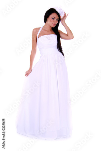 © Andrey_Arkusha, Naklejka premium Full length of a beautiful young woman in wedding dress