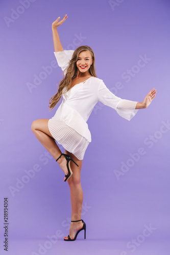 Fototapeta premium Full length portrait of a cheerful young woman