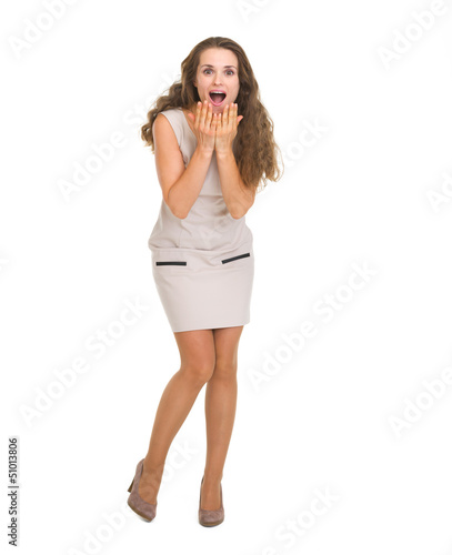 © Alliance, Fototapeta premium Full length portrait of surprised young woman