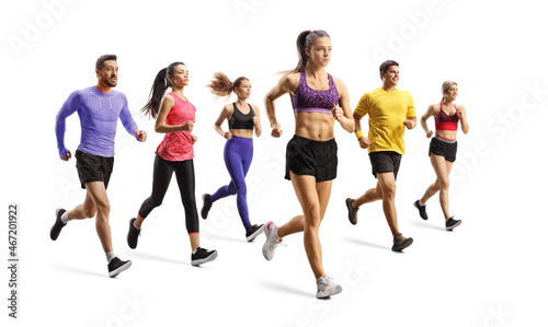 © Ljupco Smokovski, Fototapeta premium Full length shot of young people running a marathon