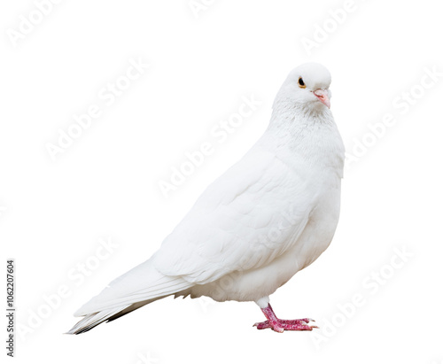 © E.O., Naklejka premium Full-length snow-white pigeon isolated on white background