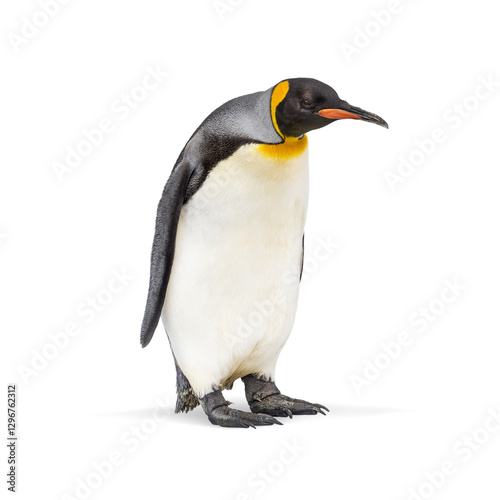 © Eric Isselée, Fototapeta premium Full length view of a king penguin standing against a transparent background