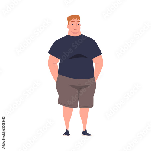 © topvectors, Fototapeta premium Full Man Character with Plump Body Standing and Smiling Vector Illustration